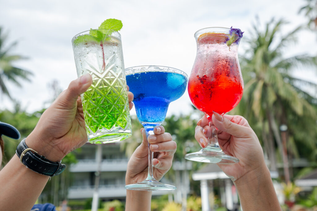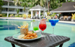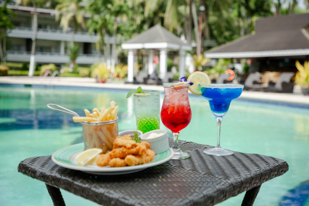 Dig into some snacks to go with refreshing juices and cocktails while dipping in the pool or basking in the sun.